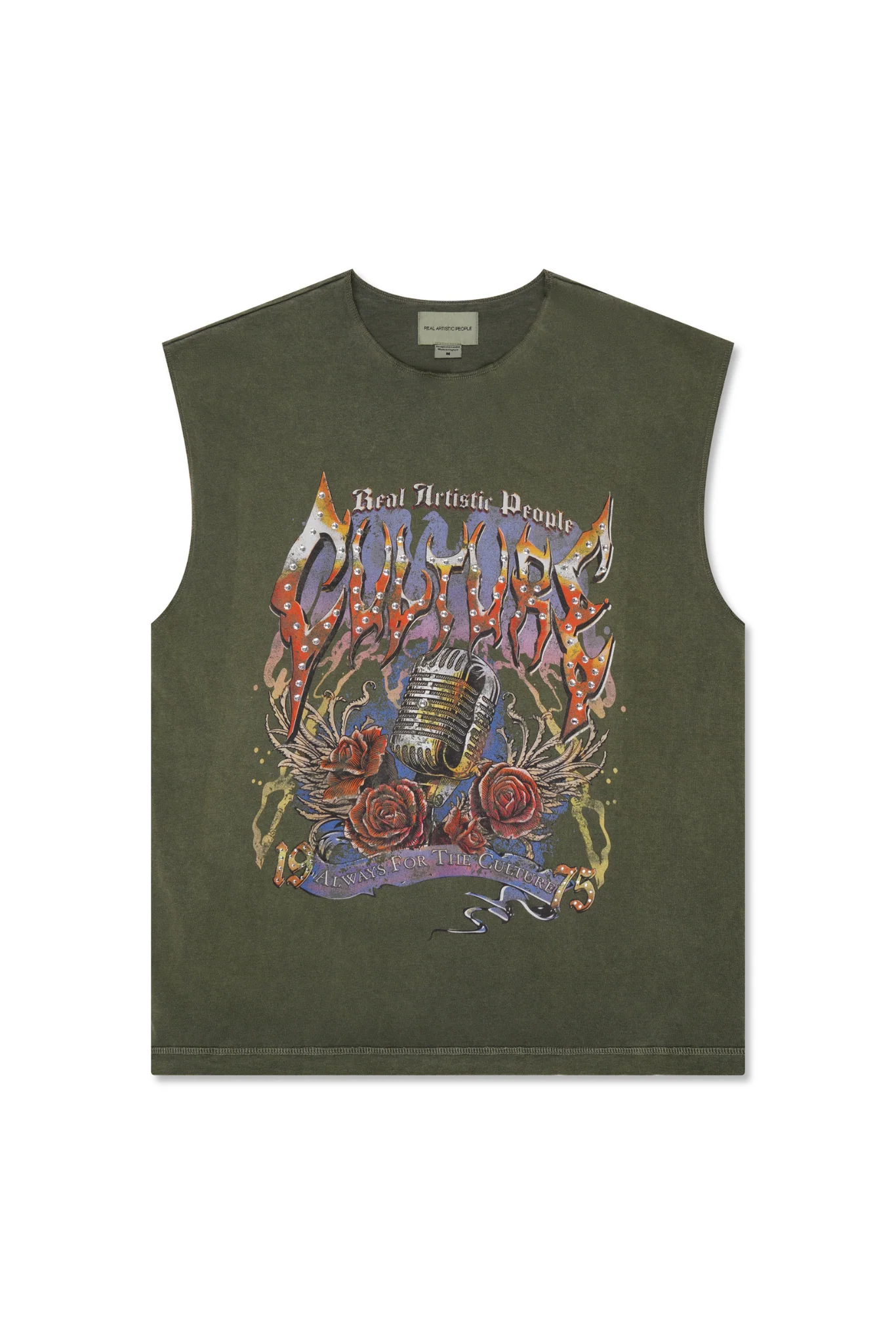 Crafted from 200 GSM 100% vintage washed jersey British milled cotton. Each tank top from the collection features unique graphics , fit is relaxed. The tank top is completed with 100% real glass crystals, manufactured with the highest degree of precision.