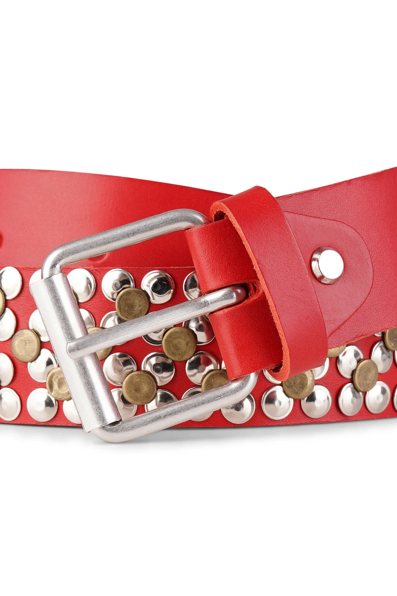 Leather Studded Belt - Aurora Red