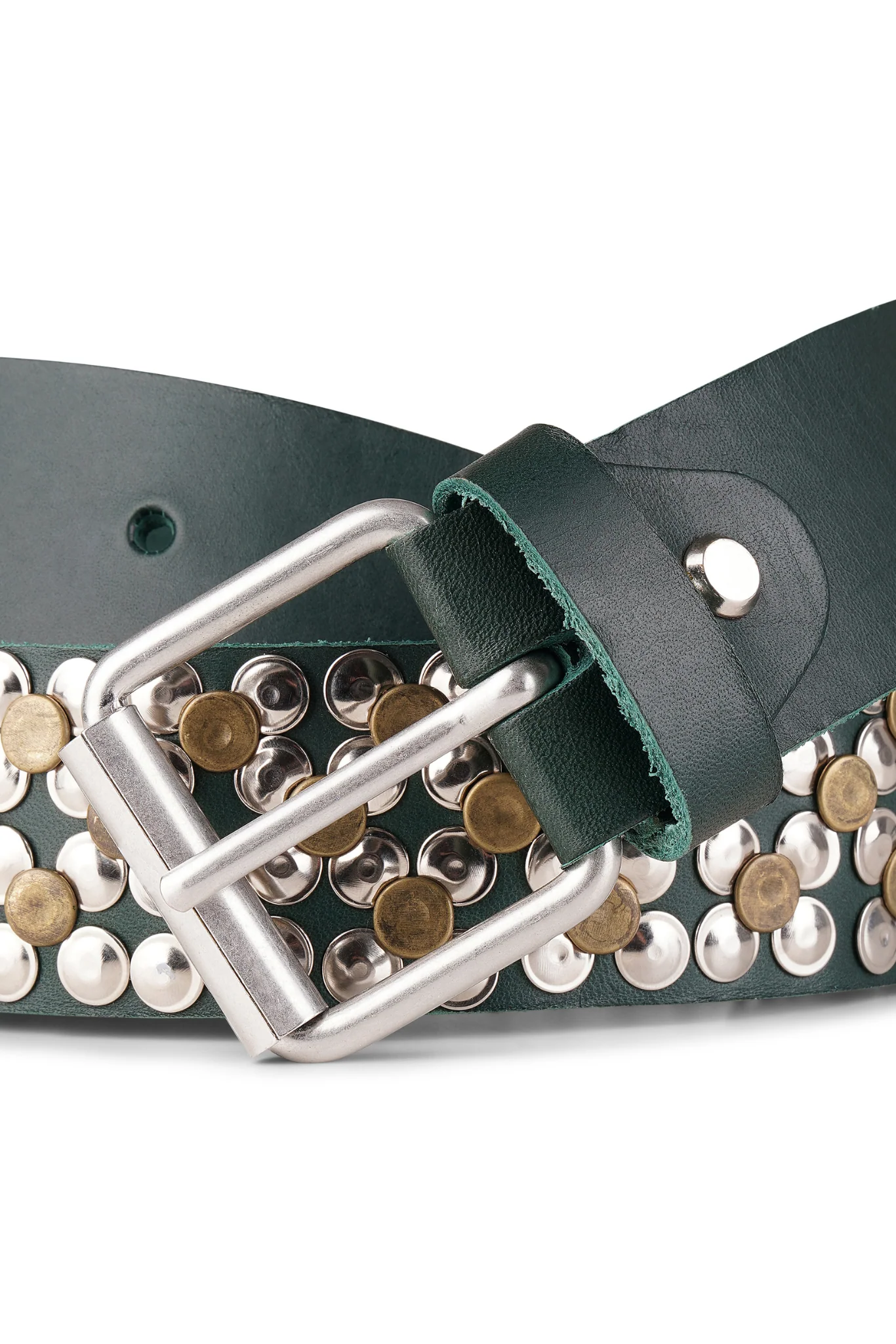Elevate your style with our Organic Leather Studded Belt, meticulously crafted for those who appreciate luxury and sustainability. Made from high-quality organic leather, this belt combines durability with a refined aesthetic. The eye-catching studs and our signature RAP button detailing add a unique touch that sets this accessory apart. Inside, the RealArtisticPeople branding is embossed as a mark of authenticity and craftsmanship, making this belt not just an accessory but a statement piece.