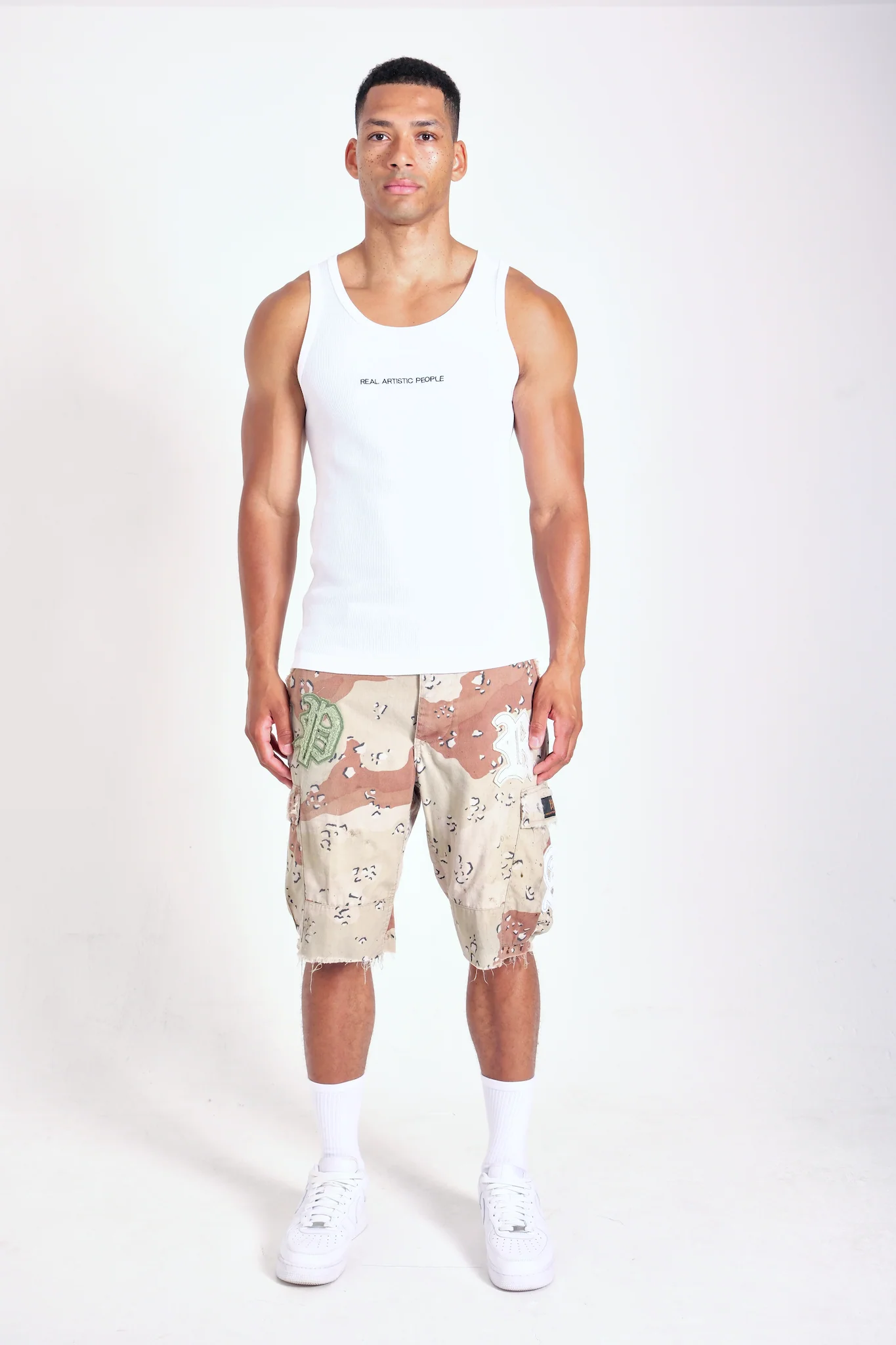 Introducing our unique and environmentally conscious recycled military cargo shorts. Crafted from 100% cotton, these shorts offer a perfect blend of comfort and durability. Each pair is transformed from authentic military cargo pants, expertly repurposed into stylish shorts. To add a touch of personal flair, they are individually hand-painted with intricate designs and feature carefully embroidered rap badges, reflecting the vibrant culture of hip-hop. Embrace sustainability without compromising on style with these one-of-a-kind shorts.