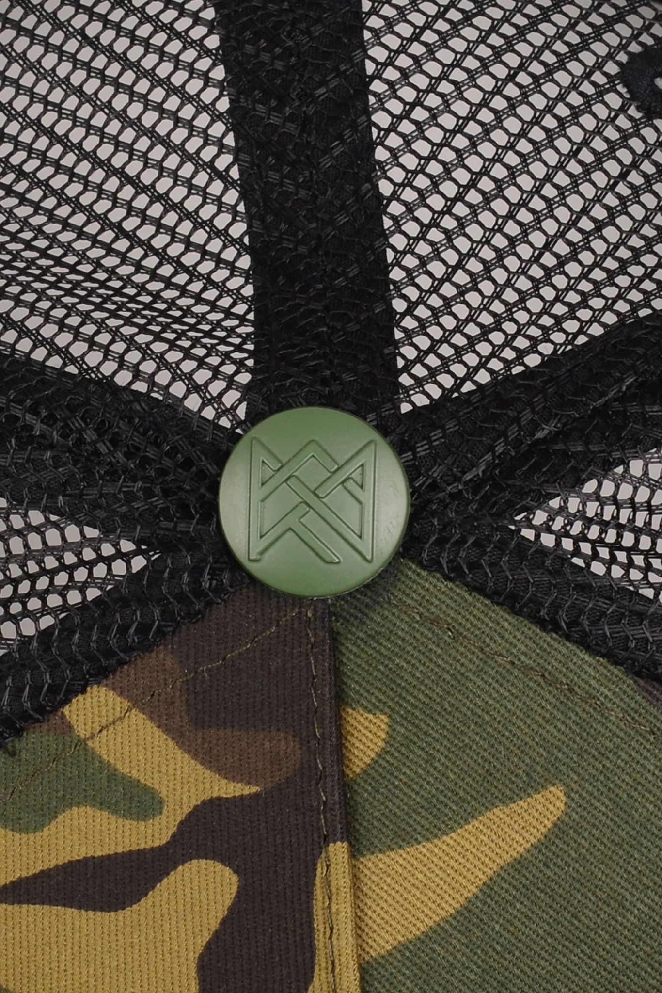 TheĀ Rap EmbroideredĀ Logo Trucker Cap in Camo -Ā Green DetailingĀ