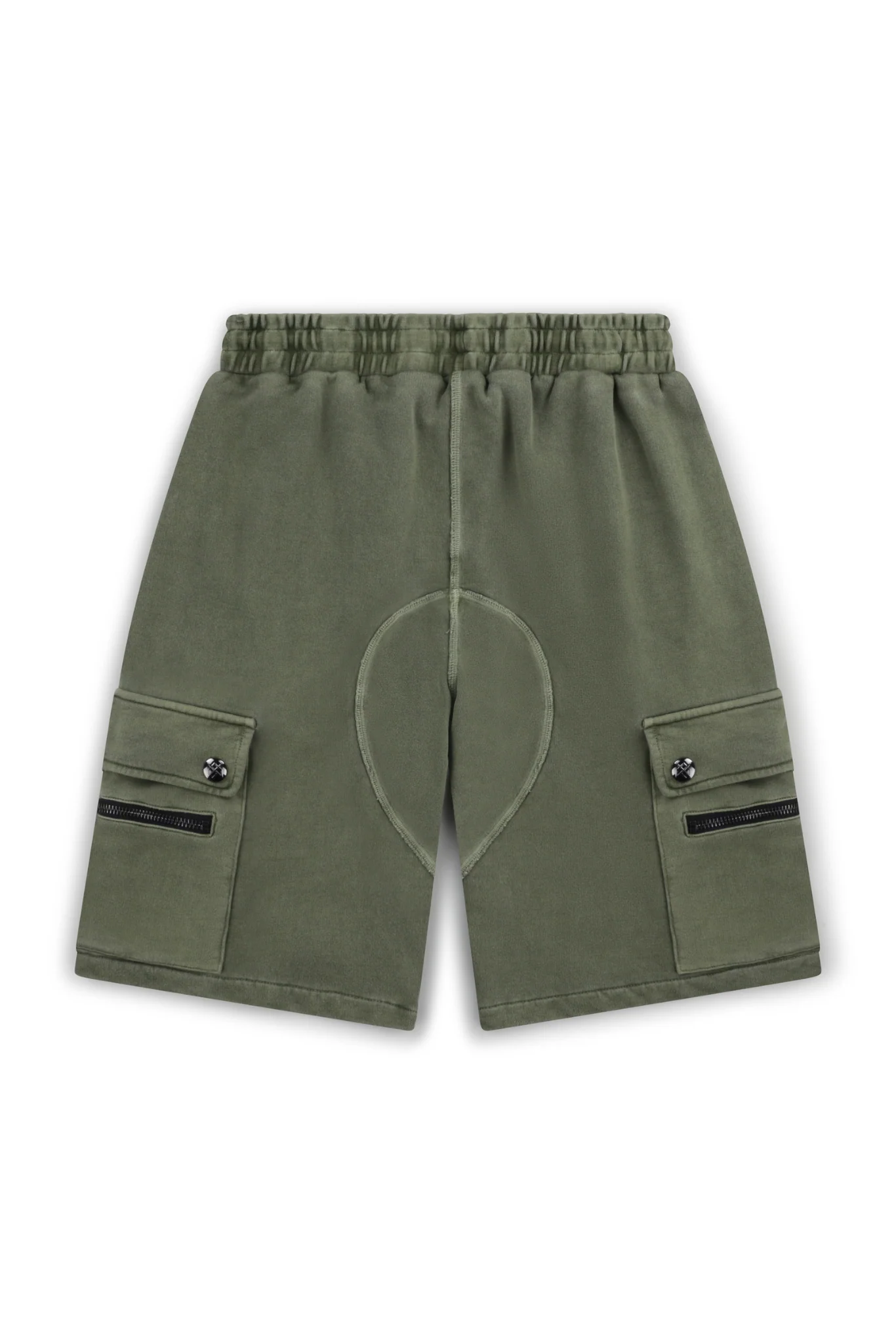 Our BADGE CARGO SHORT in Vintage Green is designed with a relaxed fit and crafted from 100% organic cotton for breathable comfort. Enjoy unrestricted movability with a fit that offers just the right amount of roominess without compromising on style.